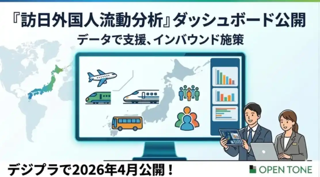 本機能の構築にあたっては、観光ビッグデータ分析に強みを持つ株式会社オープントーン(本社:東京都千代田区、代表取締役社長:佐藤 大輔)の支援を受け、現場の担当者が直感的にデータを読み解き、施策に活用できるツールを実現しました。 |