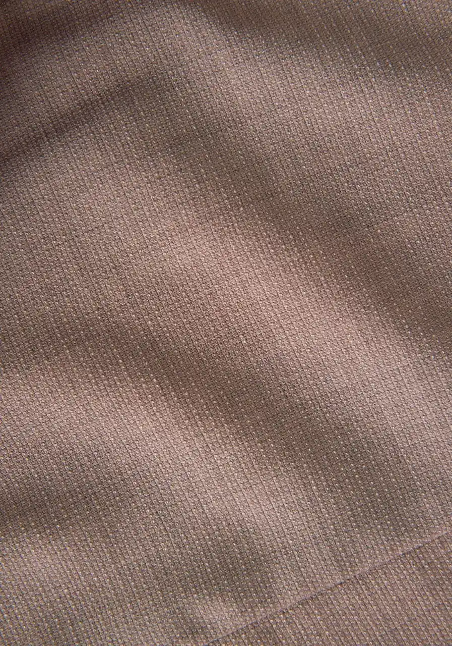 植物由来原料を一部使用した高機能素材「ソロナ(R)」を用い、リネン(亜麻)のようなドライなタッチやナチュラルな質感を再現し、見た目にも涼しげで軽やかな着心地を実現しました。高い通気性により衣服内の蒸れを軽減するとともに、ストレッチ性や防シワ性、マシンウォッシャブル対応などの実用性にも優れています。暑い季節でも快適さときちんとした印象を両立し、オフィスシーンから普段着まで幅広いシーンで活躍する素材です。 |
