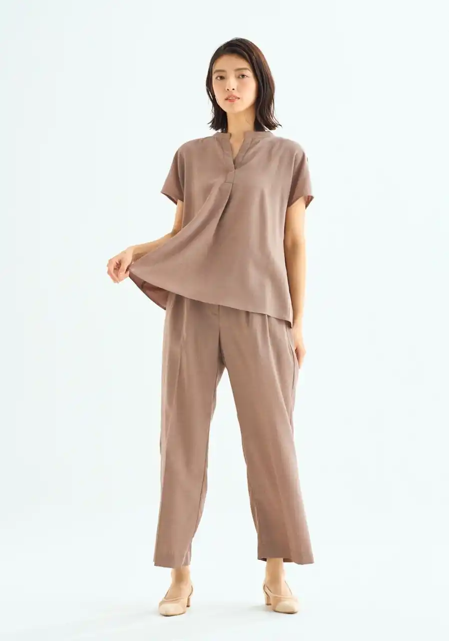 麻のような清涼感のある風合いと、ストレッチ性やイージーケア性を兼ね備えた「麻調ソロナ(R)素材」を採用し、オフィスシーンから普段使いまでさまざまなシーンに対応し、快適な着用感を提供します。 |