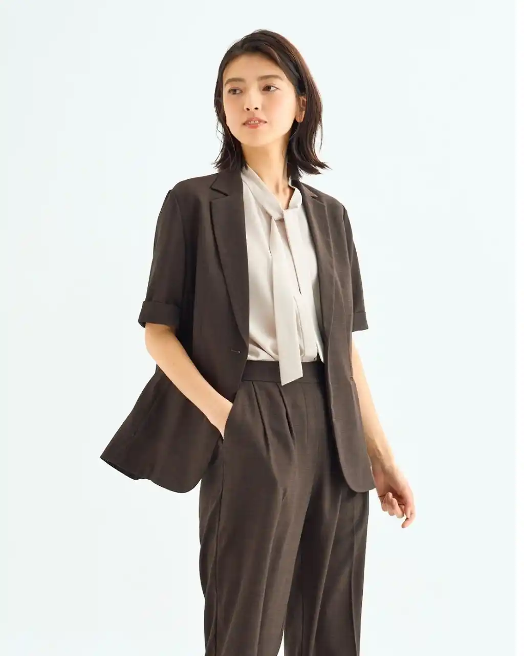 ジャケット、パンツ、インナーを同一素材で展開することで、素材の持つ軽やかさや機能性、快適な着用感を全身で体感でき、統一感のある洗練されたスタイリングを実現します。 |
