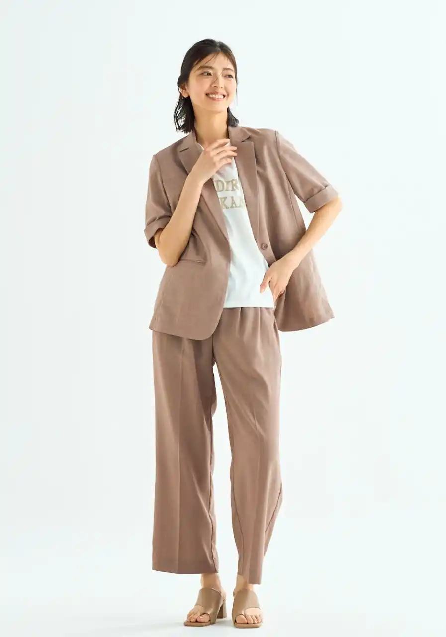 こうしたニーズに対応するため、当社は通気性やストレッチ性などの機能性に加え、家庭で洗える実用性やシワになりにくい仕様を備え、オフィスから普段着まで幅広いシーンで活躍するレディース向けセットアップを開発しました。 |