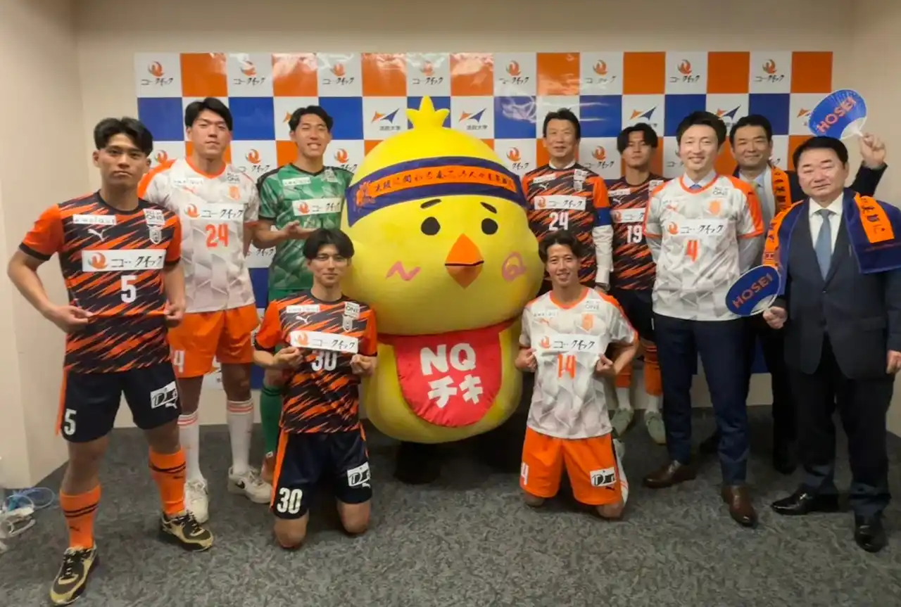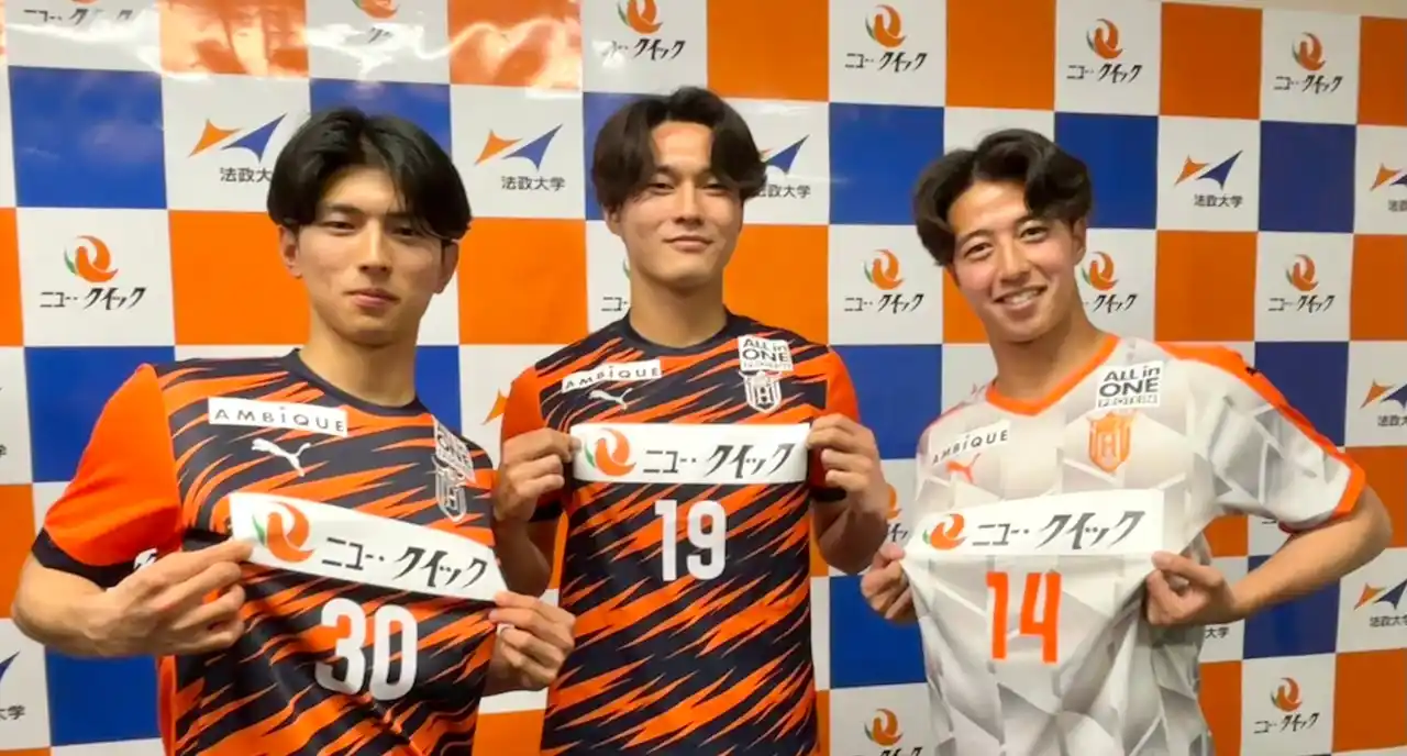全国に83店舗の精肉店を展開するニュー・クイック(株式会社ニュー・クイック、本社:東京都中央区日本橋、代表取締役:林 浩二)は、2026年度より関東大学サッカーリーグ戦1部(以下、1部リーグ)で戦う法政大学体育会サッカー部のメインスポンサーに就任し、2026年3月20日(金)から2027年3月19日(金)まで同部の活動を支援いたします。公式ユニフォーム上部胸部分へのロゴ掲出に加え、食に携わる企業として、学生アスリートの身体づくりの基盤となる「食」の観点から、さらなる競技力向上と挑戦を後押ししてまいります。 |