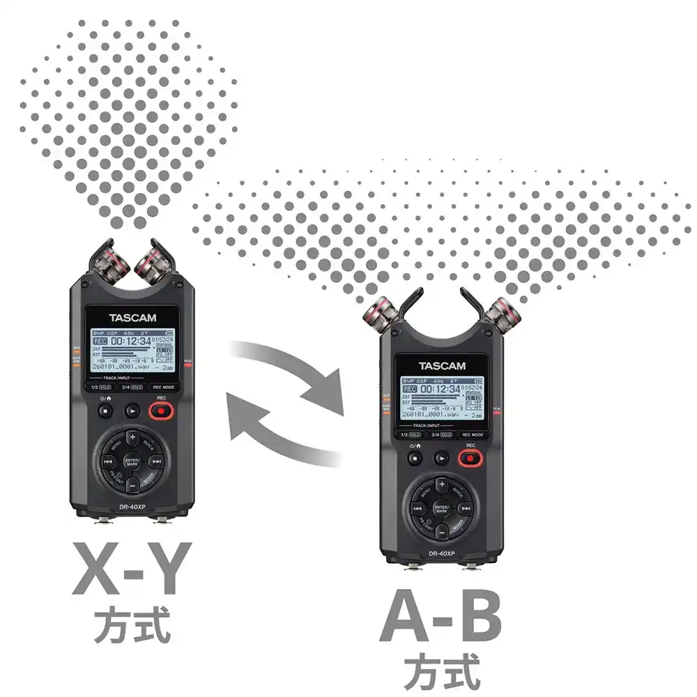 『DR-40XP』は、録音対象に応じたステレオ収録を実現する A-B/X-Y方式を切り替え可能な内蔵マイクのほか、+48Vファンタム電源対応のXLR/TRSコンボ入力を2系統装備し、外部マイクを使用した本格的な収録にも対応。ミュージシャン、フィールドレコーディングエンジニア、ビデオグラファーからライバーまで多くのクリエイターに向けた新たな定番機です。 |