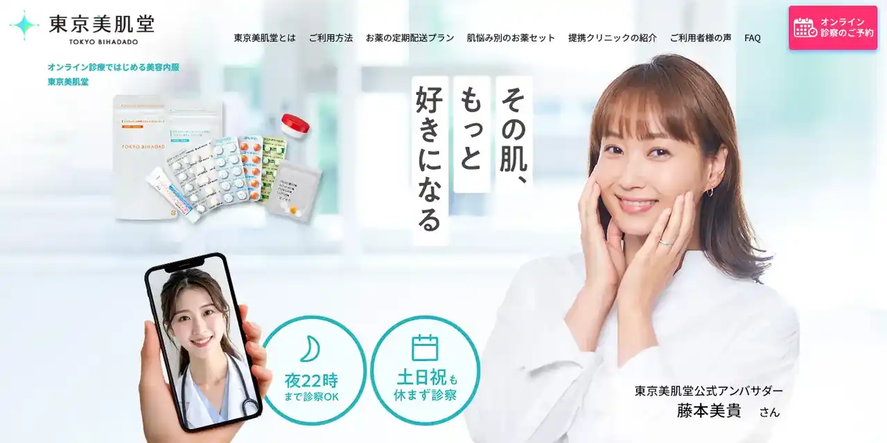 「東京美肌堂」は、お客さまのお肌のトラブルや悩みに対して、医師との相談を通じて、医薬品・漢方薬・ドクターズコスメなどを活用した美肌治療プランを提供するプラットフォームです。 |