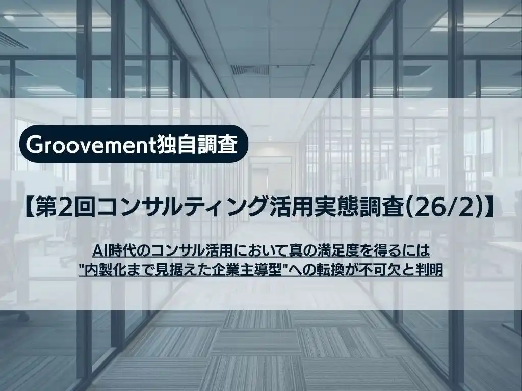 | プロフェッショナルの新たな挑戦を支援するGroovement(本社:東京都渋谷区、代表取締役:浴野真志)は、大企業(従業員数1,000人以上)においてコンサル発注経験を持つ課長相当以上の役職者の450名を対象に、「コンサルティング会社の活用実態調査(2026年2月)」を実施いたしました。 | |||