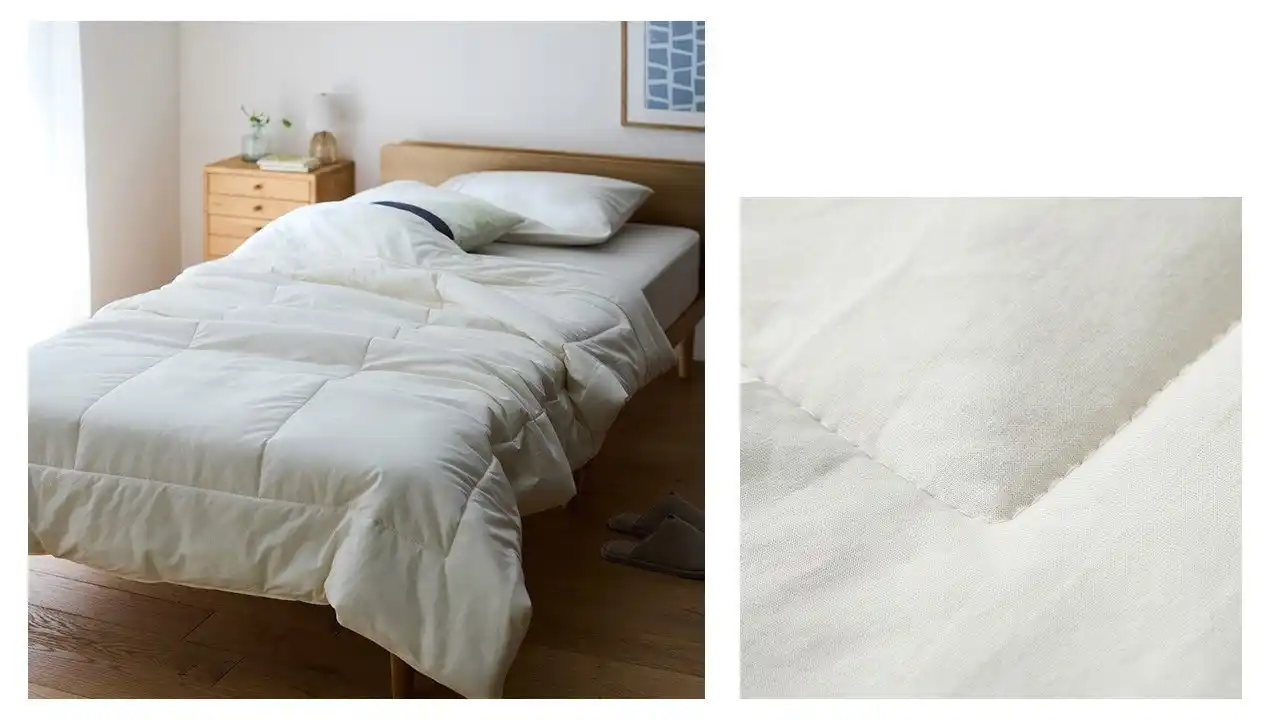 中わたには、湿気を素早く吸い取る「吸湿わた」を使用することで、寝汗による寝具の湿度上昇を抑え、不快なべたつきを軽減します。 |