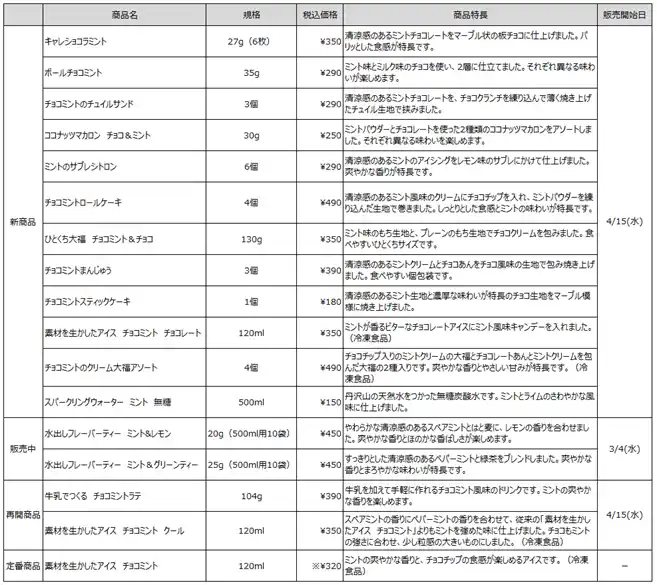 ※1 先行発売商品:「ボールチョコミント」、「キャレショコラミント」、「ココナッツマカロン チョコ&ミント」、「素材を生かしたアイス チョコミント チョコレート」、「素材を生かしたアイス チョコミント クール」、「チョコミントのクリーム大福アソート」、「牛乳でつくる チョコミントラテ」 |