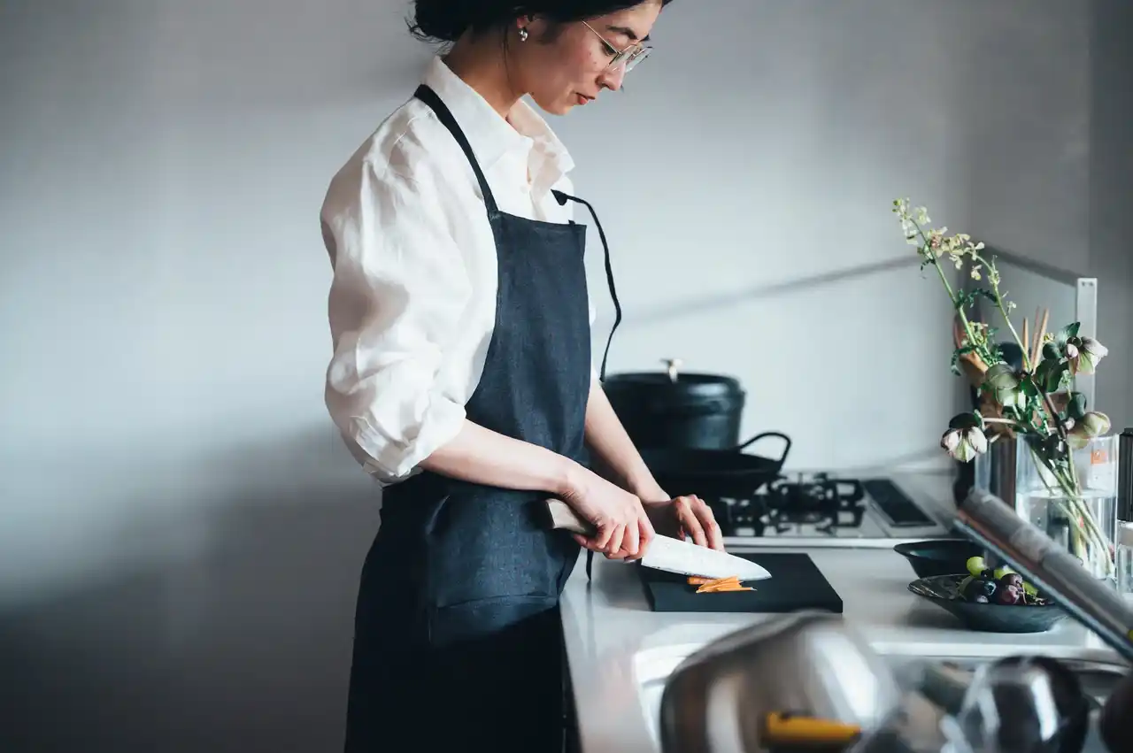 プレゼントの定番のエプロンも、凛とした黒でかっこよく。無駄を削ぎ落としたシンプルなデザイン、そして風を纏うような軽やかなライトリネンの素材。毎日を丁寧に過ごしたくなる、‘着る’という感覚を大切にした大人のエプロン。 |