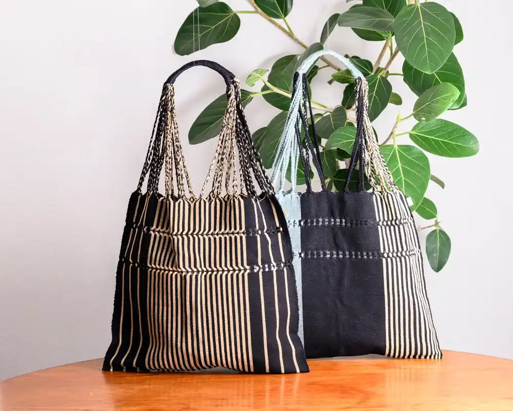 ハンモックを半分に折り込んだようなデザインが特徴のバッグ。一つずつメキシコで機織り機を使って手織りで作られています。手作りならではの風合いが魅力で、内容量もたっぷりなので、日傘や羽織などこれからのシーズンの必須アイテムがしっかり入るのも安心してお使いいただけます。 |
