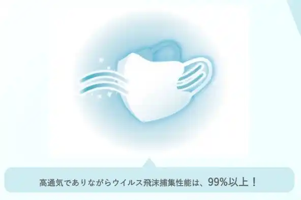 ・息苦しさを解消しながら、ウイルス飛沫などを99%カットするフィルタ性能を両立しました。 |