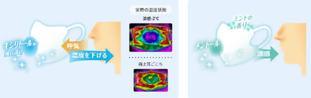 「キシリトール」配合により、呼気の水分に反応して表面温度マイナス2℃※4を実現 |