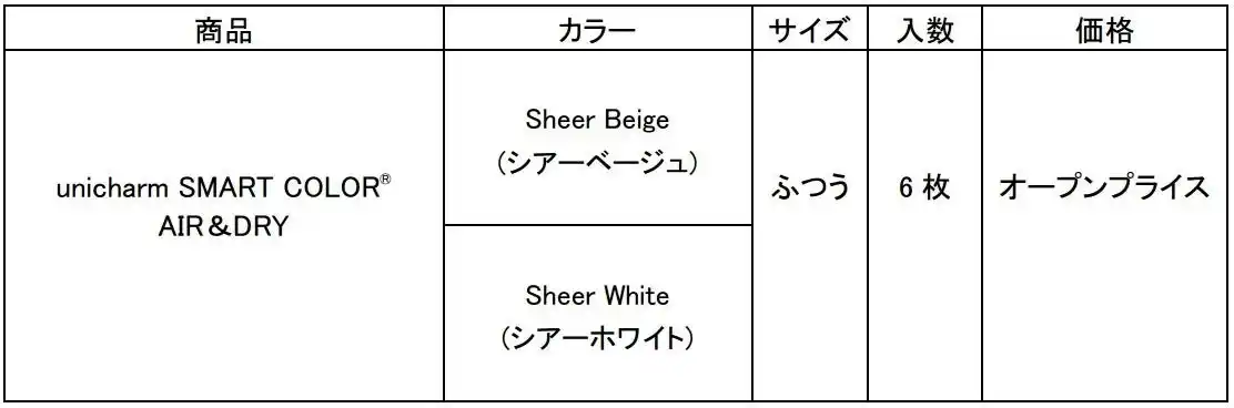Sheer Beige(シアーベージュ) Sheer White(シアーホワイト) 『unicharm SMART COLOR(R) AIR&DRY』 |