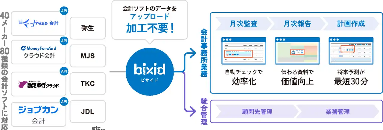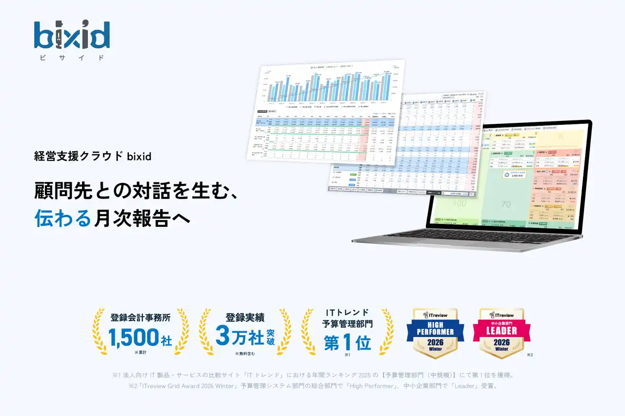 bixidの登録会計事務所数は1,500社を突破し、これまで多くの会計事務所様にご活用いただき、顧問先支援の高度化・業務効率化に貢献してまいりました。 |