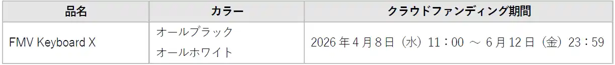 詳細は「FMV Keyboard X」クラウドファンディングページをご確認ください。展示情報はサイト内「活動報告」にて随時更新いたします。 |