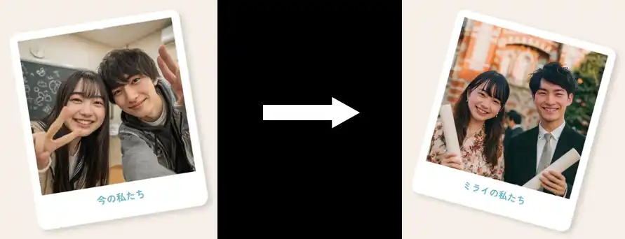 | 江崎グリコ株式会社は、新生活が始まる季節に合わせて、#Welcome Pocky「ミライ同窓会」キャンペーンを実施中です。本キャンペーンでは、「ポッキー」のパッケージにある二次元コードから写真撮影ページにアクセスし、友達と写真を撮影すると「オリジナル未来フィルター」で未来の姿の画像が生成され、ダウンロードできます。 | |||||||||||