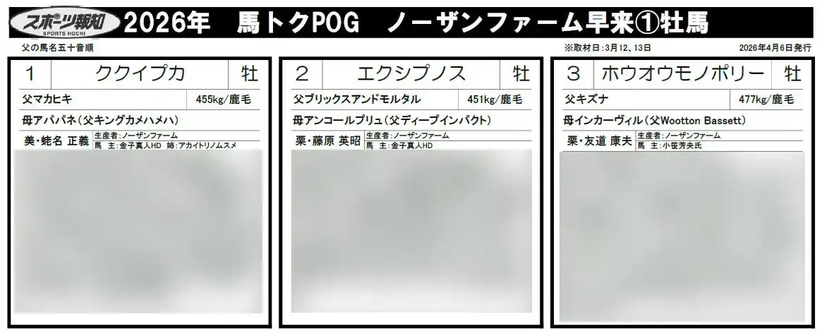 ■馬トクPOGプリント2026(ノーザンF空港編) |
