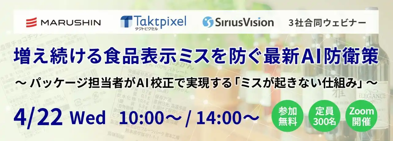 | 昨年12月にリリースしたニュースから4か月、増え続ける食品表示ミスを防ぐ最新AI防衛策として、パッケージ担当者がAI校正で実現する「ミスが起きない仕組み」をご紹介いたします。ぜひ参加ご検討ください。 | |||||||||||||||||||