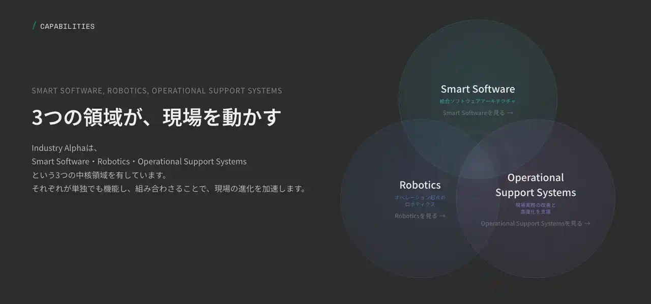 純国産のハードウェアとソフトウェアを基盤にスマート工場・倉庫の実現を推進するIndustry Alpha株式会社(本社:東京都板橋区、代表取締役:渡辺 琢実)は、コーポレートサイトを全面的に刷新し、設立以来現場で磨いてきた3つの強みを新たなブランドメッセージとして発信します。 |