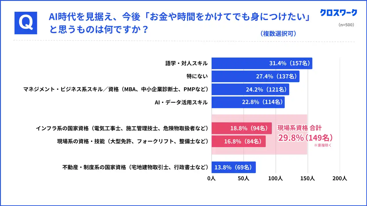 AI時代を見据え、約4人に1人が「現場系・インフラ系資格」の取得に意欲 |