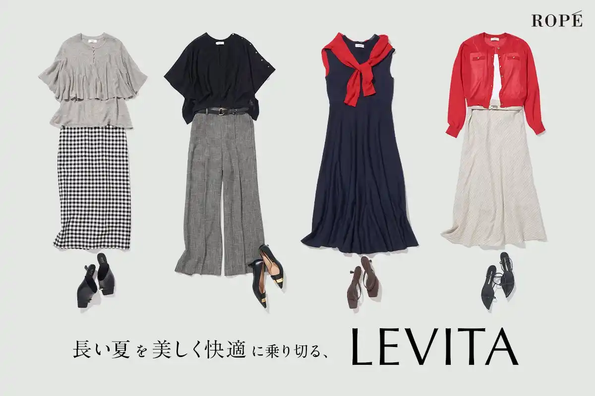 | 株式会社ジュン(本社:東京都港区、代表取締役社長:佐々木進、以下「ジュン」)が運営する、「ROPE'(ロペ)」は、日差しが強くなる季節に向けて、シンプルになりがちな着こなしに上品さと表情を与えてくれる「LEVITA(レヴィータ)」シリーズを、全国の「ROPE'」直営店舗およびジュン公式オンラインショッピングストア「J'aDoRe JUN ONLINE(ジャドール ジュン オンライン)」にて、2026年4月10日(金)より順次発売いたします。 | ||||||||||||||