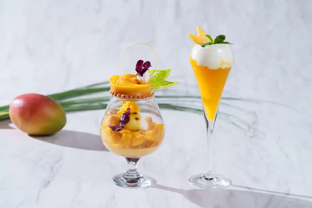 太陽の光を映したような濃密な甘みで、幅広いスイーツで親しまれてきたマンゴーが主役。26階から望む景色が、マンゴーの鮮やかな色合いを映し出し、グラスをより一層美しく引き立てます。 |