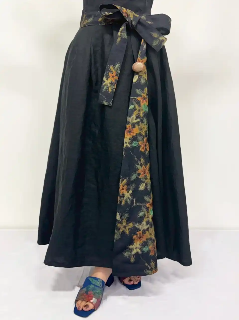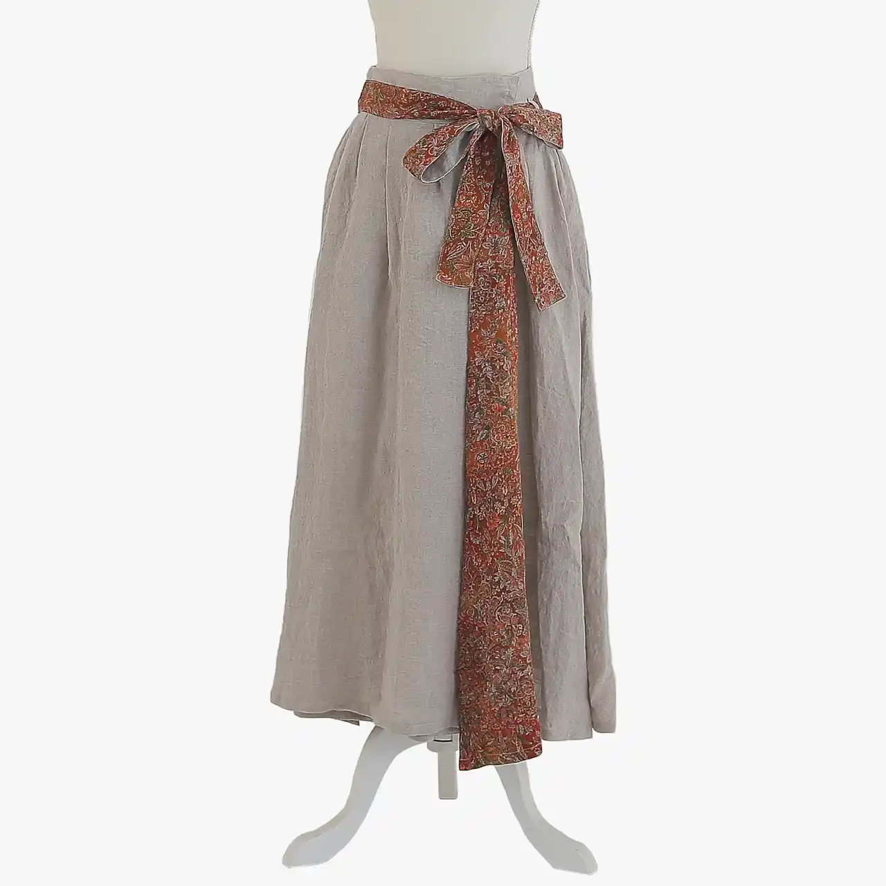 リネン素材を贅沢に使用した華やかなラップスカート。 |