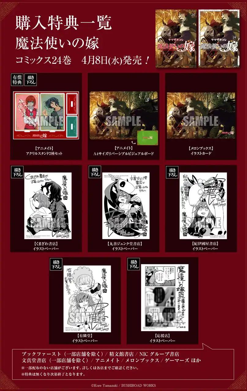 「魔法使いの嫁」24巻発売記念フェアを全国の対象書店で実施いたします。 |