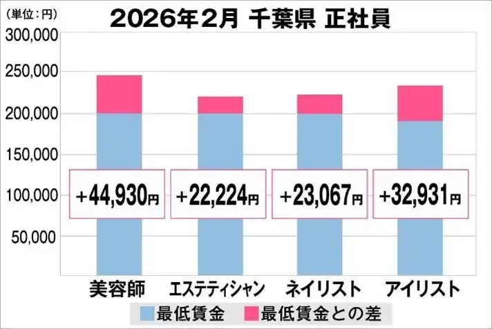 千葉県の美容業界における採用時給料に関する調査結果(正社員)2026年2月美プロ調べ |