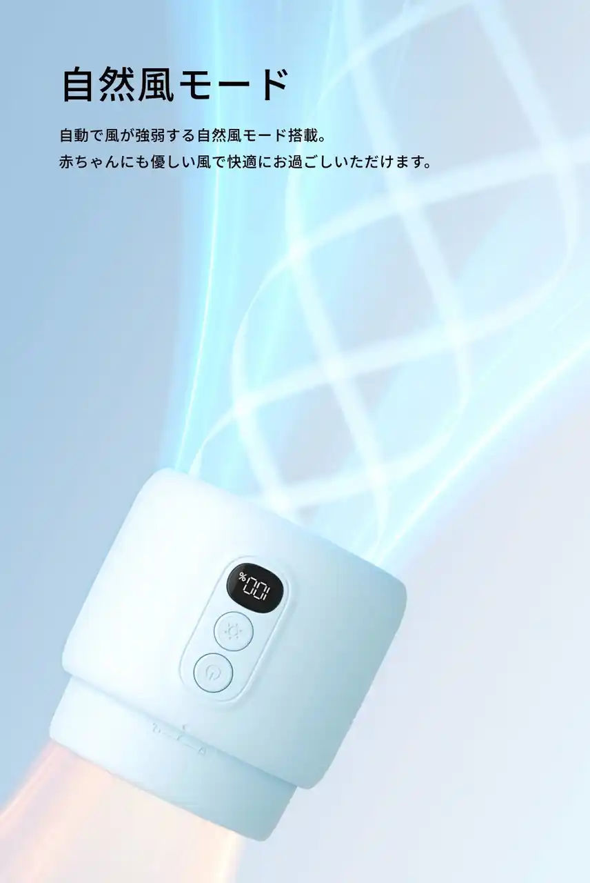 自動で風が強弱する自然風モード搭載。赤ちゃんにも優しい風で快適にお過ごしいただけます。また静音設計で赤ちゃんの眠りを妨げません。 |