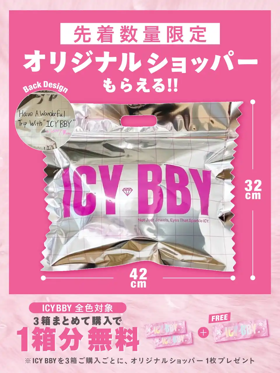 ブランド誕生を記念して、ICY BBYを3箱ご購入毎に、オリジナルショッパーを1点プレゼント! |