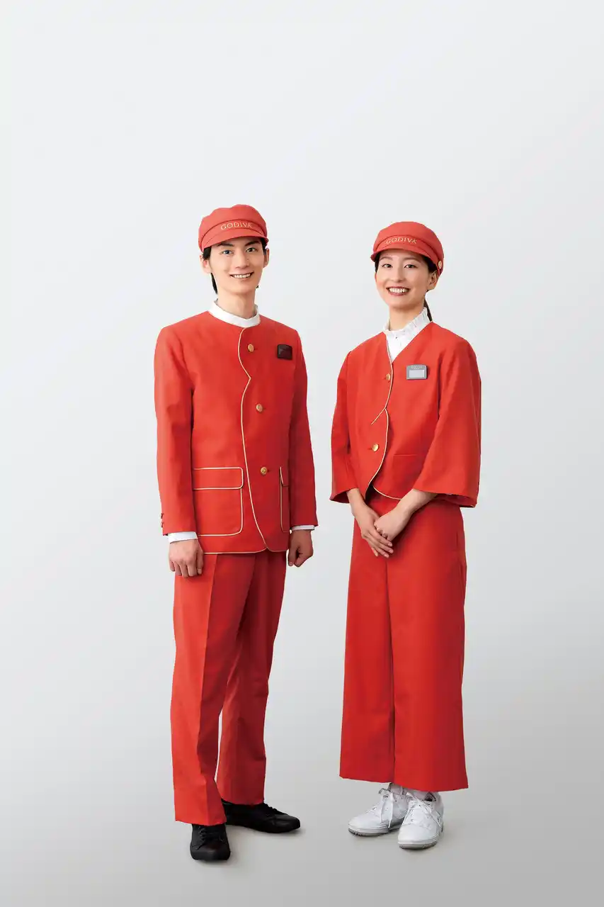 1926年にベルギーのショコラティエ、ピエール・ドラップスが始めた家族経営の小さなチョコレート工房から始まったゴディバは、2026年、創業100周年を迎えました。これを記念しユニフォームのリニューアル企画「衣装が語るブランドの情熱プロジェクト」を立ち上げました。 本プロジェクトは、「mina perhonen」の皆川 明氏をデザイナーに迎え、ブランドの価値観をあらためて可視化する取り組みとして実施しました。ユニフォームに採用された象徴的な赤は、ブランドの核にある情熱を表現、またデザイン面では、ゴディバのハート形のチョコレート(クール)からインスピレーションを受けた襟のパイピング、四つ葉のクローバーボタンなど、ゴディバのブランドの歴史と哲学を細部に織り込みました。四つの葉は、関わるすべての人々への想いを象徴しています。加えて、店舗スタッフへのヒアリングを重ね、動きやすい設計や快適性を追求、美しさと機能性の両立を図り、店舗体験を支える装いへと刷新しました。 本取り組みを起点に、店舗体験のさらなる進化と、 働く環境の高度化を推進してまいります。 |