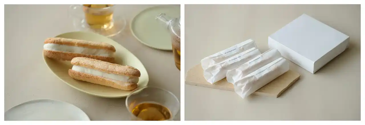 バニラ、レモン、トンカ豆を組み合わせたクリームを、ふわっと軽やかなダックワーズ生地にたっぷりと挟んだダックワーズサンド。Mr. CHEESECAKEのシグネチャーフレーバーを再現したレアチーズケーキのような甘く爽やかなクリームと、旨味のあるダックワーズ生地が重なる心地よい味わいをお楽しみください。 |