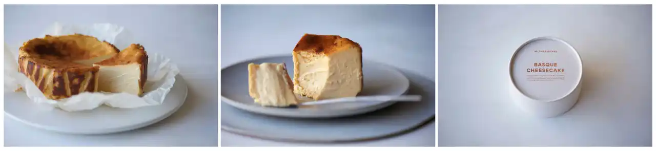 Mr. CHEESECAKEがつくる、バスクチーズケーキ。焦がしバター、バニラ、黒糖など旨味が特長の素材を組み合わせることで、高温で焼き上げる際に生まれる香ばしい香りがケーキ全体から感じられます。そこへクリームチーズ、ヨーグルト、練乳を加え、ミルキーな味わいを足し、より滑らかな口溶けに仕上げるためにヨーグルトパウダーを加えました。いくつもの素材を組み合わせた重層的な味わい、そして外側の濃密な食感と内側のとろけるような食感のコントラストをお楽しみください。本商品は温かみを感じる色合いにMr. CHEESECAKEのロゴを施したシンプルかつ高級感あるボックスにお包みします。 |