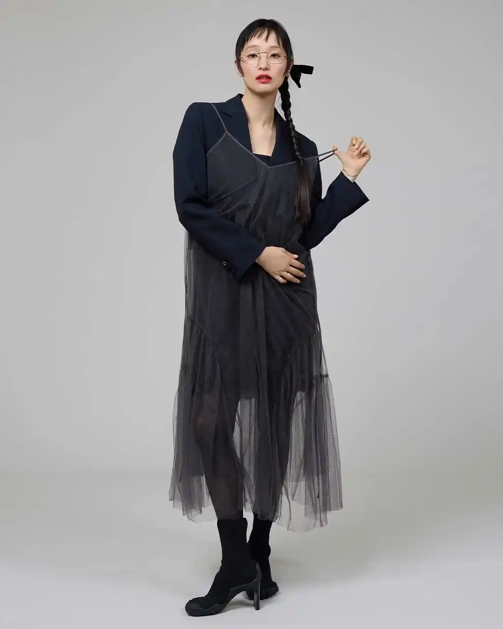 STYLING 03 : チュールドレスを重ねモードな黒を軽やかに |