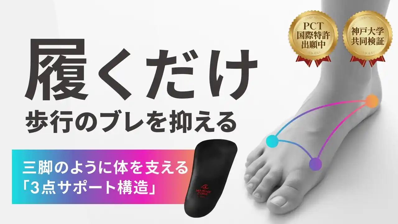 株式会社PRAIA(プライア)は、神戸大学大学院医学研究科 整形外科との共同研究により、歩行時の安定性を科学的に証明した革新的インソール「MARINE CORE(マリンコア)」を、応援購入サービス「Makuake(マクアケ)」にて2026年4月8日(水)より先行販売を開始いたしました。 |