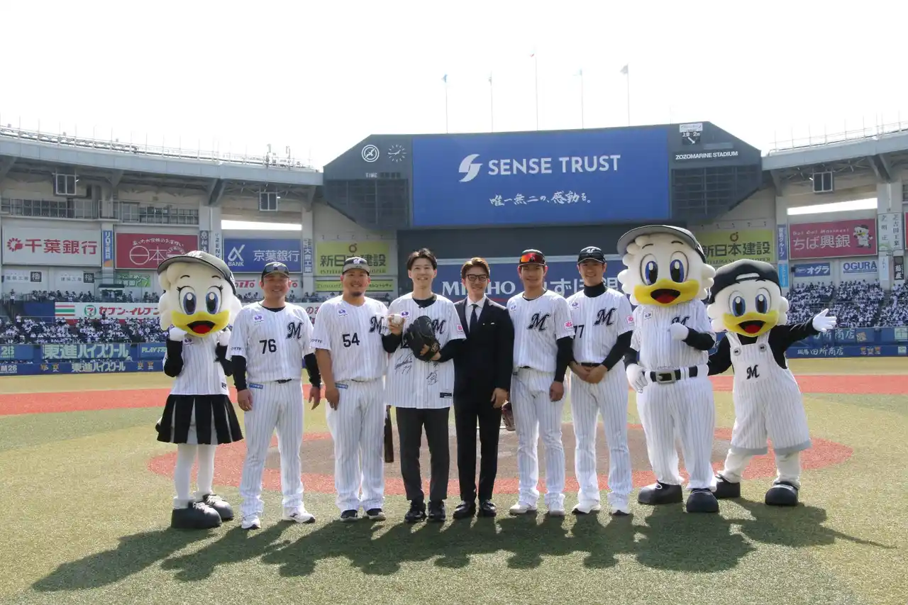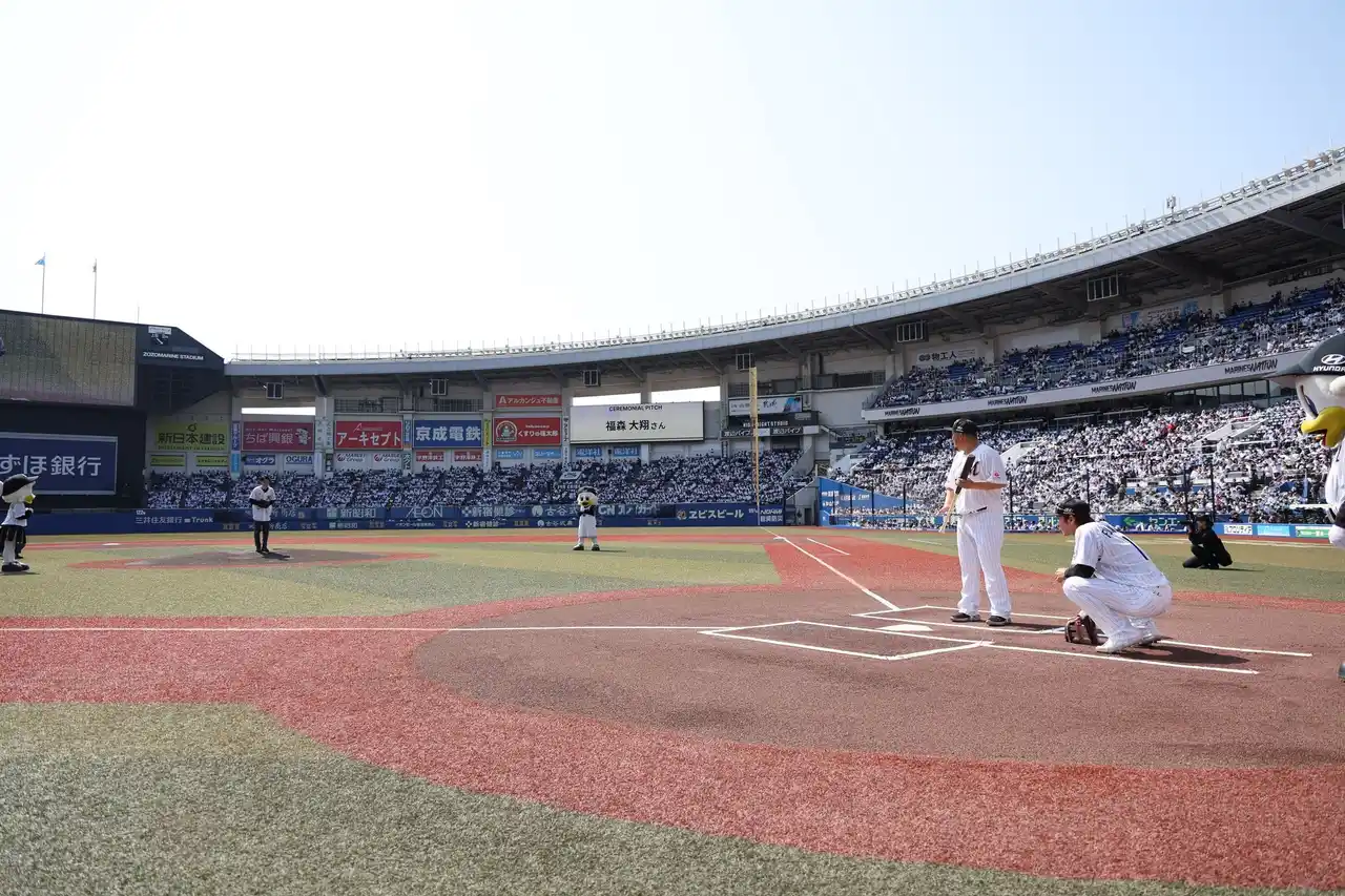 センス・トラスト株式会社(本社:大阪府大阪市、代表取締役:今中康仁、以下「センス・トラスト」)は、2026年3月28日(土)、ZOZOマリンスタジアム(千葉県千葉市)で行われたプロ野球公式戦において、希少がんと闘う元高校球児・福森大翔さん(30歳・大阪桐蔭高校出身)によるセレモニアルピッチを実施しました。 |