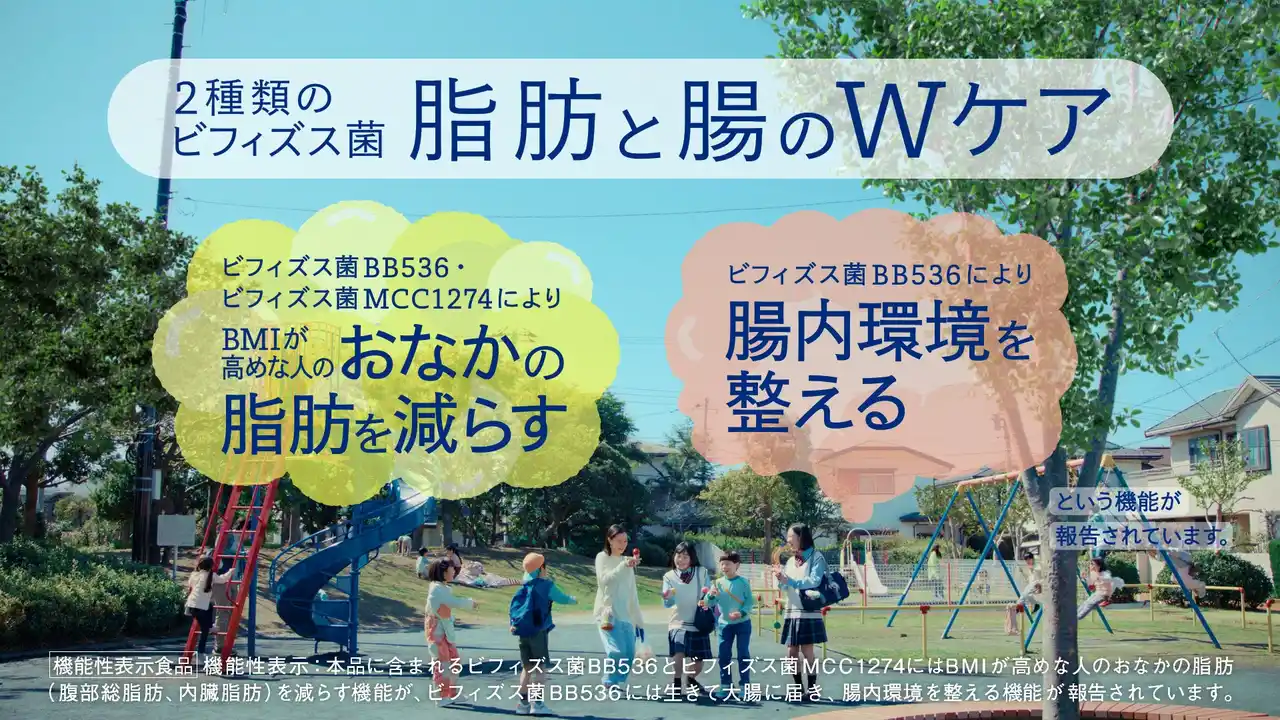 ※1 日本初、ビフィズス菌のみを機能性関与成分としておなかの脂肪(腹部総脂肪、内臓脂肪)を減らす機能、腸内環境を整える機能の2つの機能性について表示したヨーグルト (森永乳業調べ 2025年12月) |