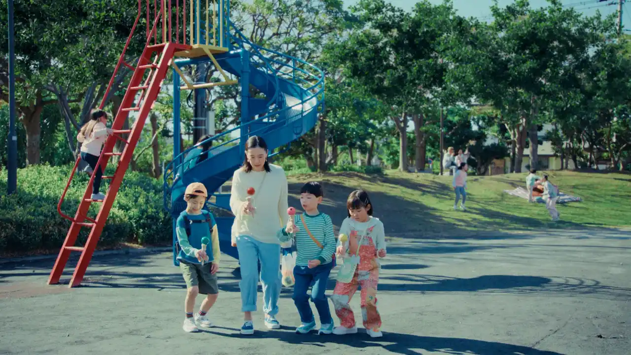 撮影現場には、TVCMの役柄さながらに、ごきげんな様子の蒼井さんが登場。共演する子どもたちとすぐに仲良くなり、本当に休日の公園で遊んでいるかのような自然体で撮影がスタートしました。蒼井さんは撮影の合間に子どもたちとけん玉をしているうちに、撮影終盤には一発で成功させるほどの腕前に。蒼井さんが子どもたちに笑いながら語りかける和やかな場面も見られ、TVCMの世界観そのままに、笑顔あふれるごきげんな撮影となりました。 |