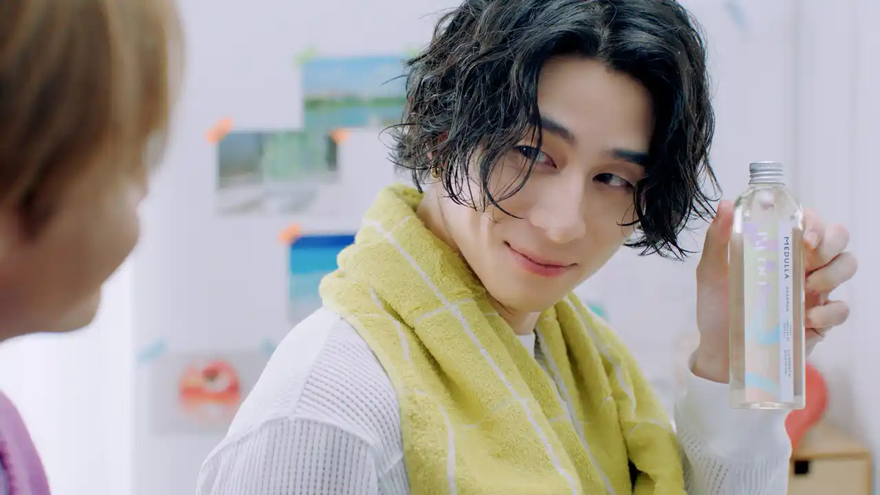 お風呂上がりの洗面台やリビングでの何気ない会話を通じて、MEDULLAとの出会いや“自分専用”のヘアケア体験を描写。名前入りボトルに喜ぶ姿や、診断結果を見せ合いながら盛り上がる様子など、まるで彼らの日常を覗き見しているかのようなリアルなシーンを通じて、ブランドの魅力を自然体で伝えています。 |