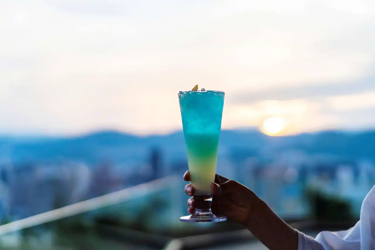 ROOF TOP CAFE & BARを代表する看板カクテル「マジックアワー」(税込1,200円)は、昼から夕暮れへと移ろう空の色合いをグラスに映したグラデーションが美しい一杯です。さらに今年は、新作「サンセットリバー」(税込1,200円)が登場。夕暮れから夜へと深まる空の情景を表現し、時間の流れとともに変化する景色をドリンクでも感じていただけます。 |