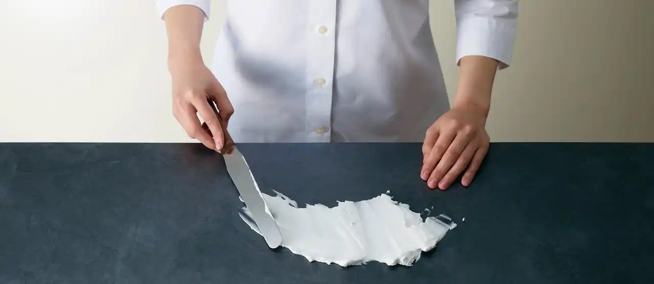 肌にのせた瞬間のほどけ方や重なり方など、繊細な違いを持つベースから、指先の感覚だけで最も心地よいものを選び取ります。 |