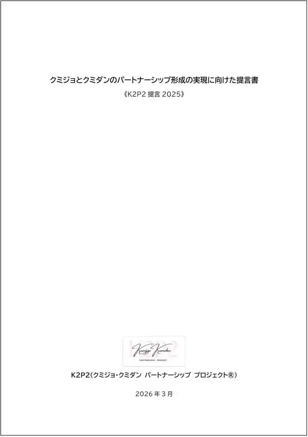 j.union株式会社(東京都新宿区、以下「当社」)は、武庫川女子大学 本田一成教授と共同で推進する産学連携プロジェクト「クミジョ・クミダン パートナーシップ プロジェクト(R)(K2P2)※」にて、2025年度の調査・対話の成果をもとにした提言書『K2P2提言2025』を発行しました。 |