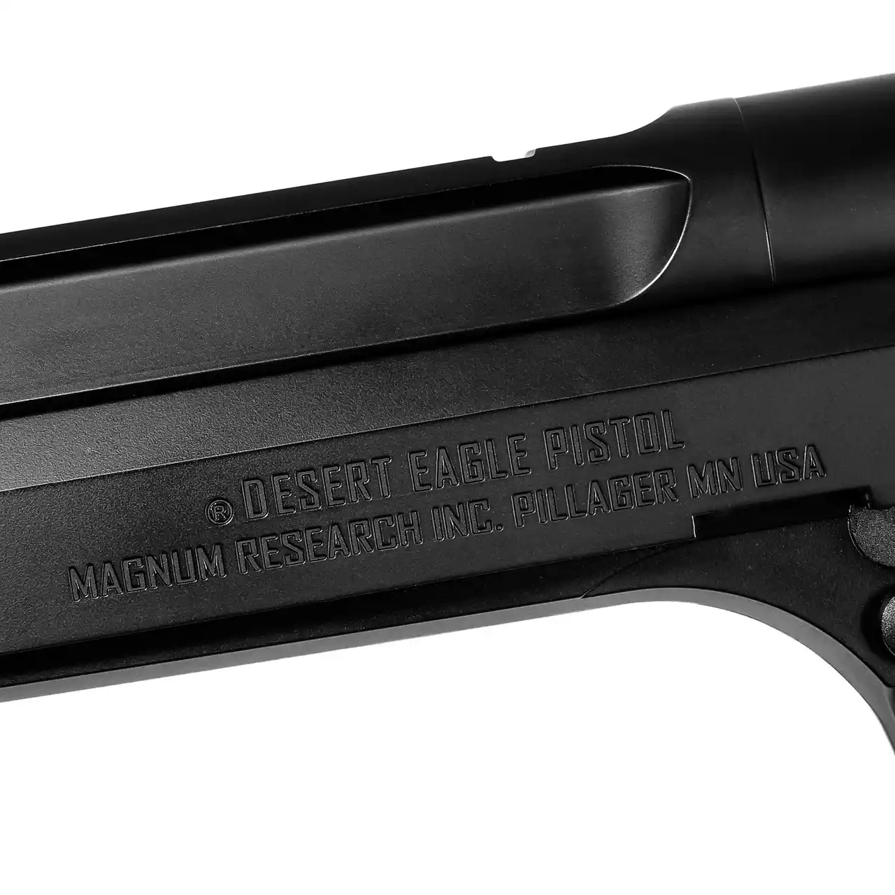 スライド後退時のフロント部分公式ライセンスならではのリアルな刻印グリップ部分にはMAGNUM RESEARCH(R)社の刻印細部までこだわった美しいディティール |