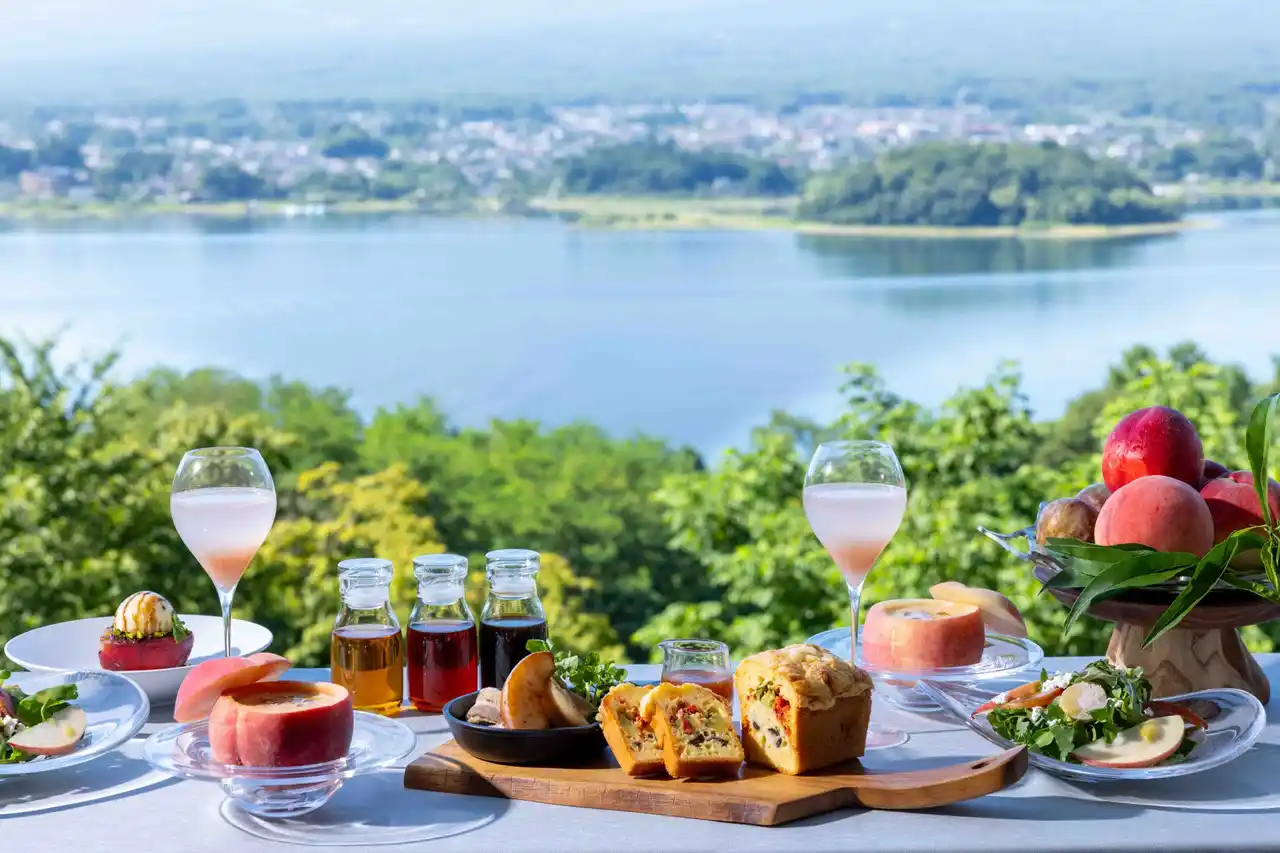 各施設が独創的なテーマで、圧倒的非日常を提供する「星のや」。日本初のグランピングリゾート「星のや富士」では、2026年7月1日から8月31日まで、河口湖の絶景を望むキャビン(客室)のテラスで、山梨の桃を堪能する「薫る桃のグラマラス朝食」を提供します。夏に旬を迎える3種の桃を贅沢に使用した朝食を、5種の異なるワインビネガーとともに味わいます。