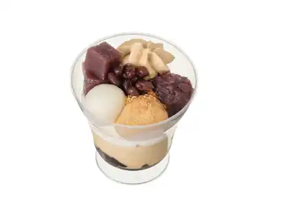 黒糖ゼリーに豆乳きなこムースとみるくムースを重ね、きなこホイップ・粒あん・わらび餅・お団子・黒糖ゼリー・かのこ豆を盛り付けた和パフェです。きなこの香ばしさとあんこの上質な甘さが織り成すハーモニーをご堪能ください。 |