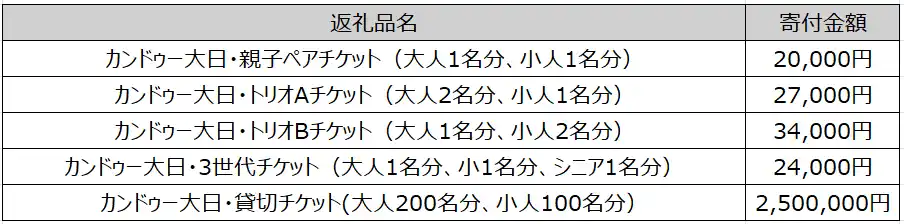 この度、同モール内の施設である「カンドゥー大日」のチケットが返礼品に加わることで、行政と民間施設の連携をさらに強固なものとし、守口市のさらなる発展と地域活性化に貢献して参ります 。 |