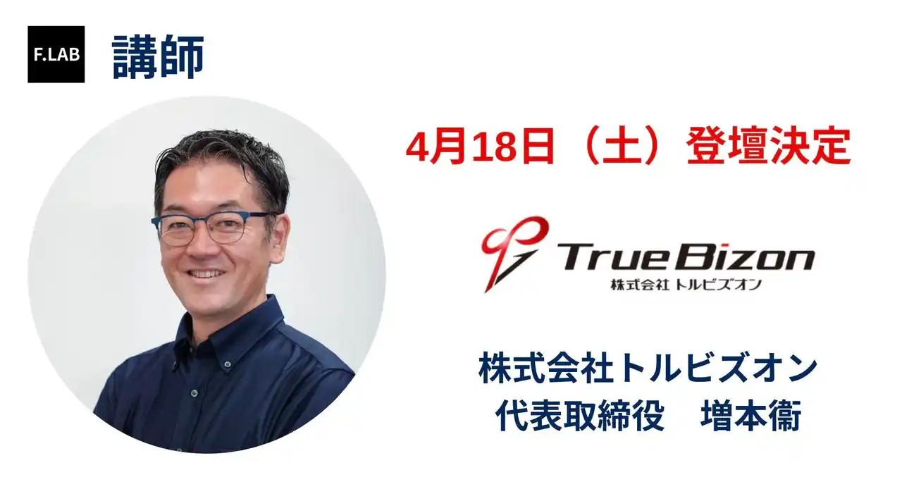 | 株式会社トルビズオン代表取締役の増本衞は、2026年4月18日(土)に博多駅横第16岡部ビルで開催される「F.LAB」に登壇し、高校生・大学生に向けて「AI×ドローン」をテーマに講演します。F.LABは、福岡の上場企業経営者をはじめ、多彩な実績を持つ登壇者が参加してきた学生向けイベントシリーズであり、産学官15機関の後援のもと、福岡の次世代人材育成を後押しする場として注目を集めています。 | |||||||||