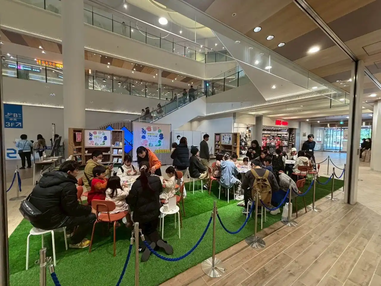 ◎ゴールデンウィーク、夏休み、正月などの大型連休に、地域密着型のイベントを連日開催しました。ゴールデンウィークは7日間、夏休みは24日間、お正月は元旦から3日間、地元のお店や学校、団体などと連携した親子で参加していただけるワークショップなどのイベントを開催しました。 |