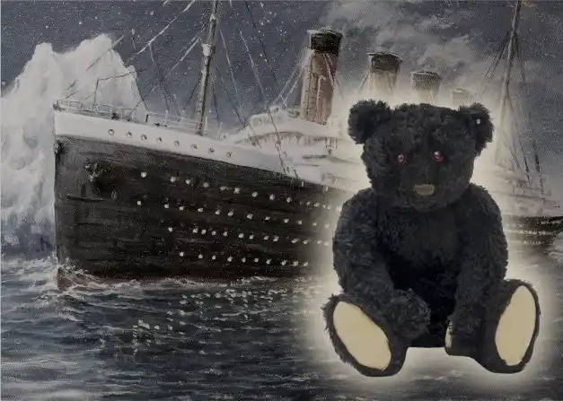 タイタニック号沈没にまつわる真っ黒いテディベア。最高額で落札された実物とその物語を公開。 |