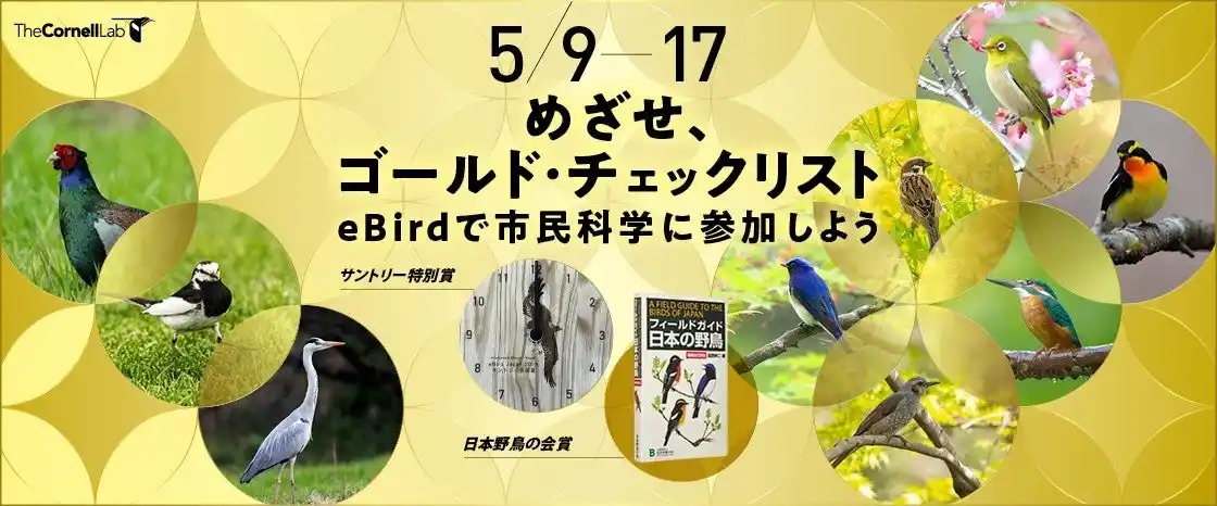 (公財)日本野鳥の会(事務局:東京、会長:上田恵介、会員・サポーター数:約5万人)は、愛鳥週間にあわせ、日ごろのバードウォッチングを通じて市民科学プロジェクトに参加していただけるよう、「愛鳥週間!めざせ、ゴールド・チェックリスト~eBirdで市民科学に参加しよう~」キャンペーンを実施します。